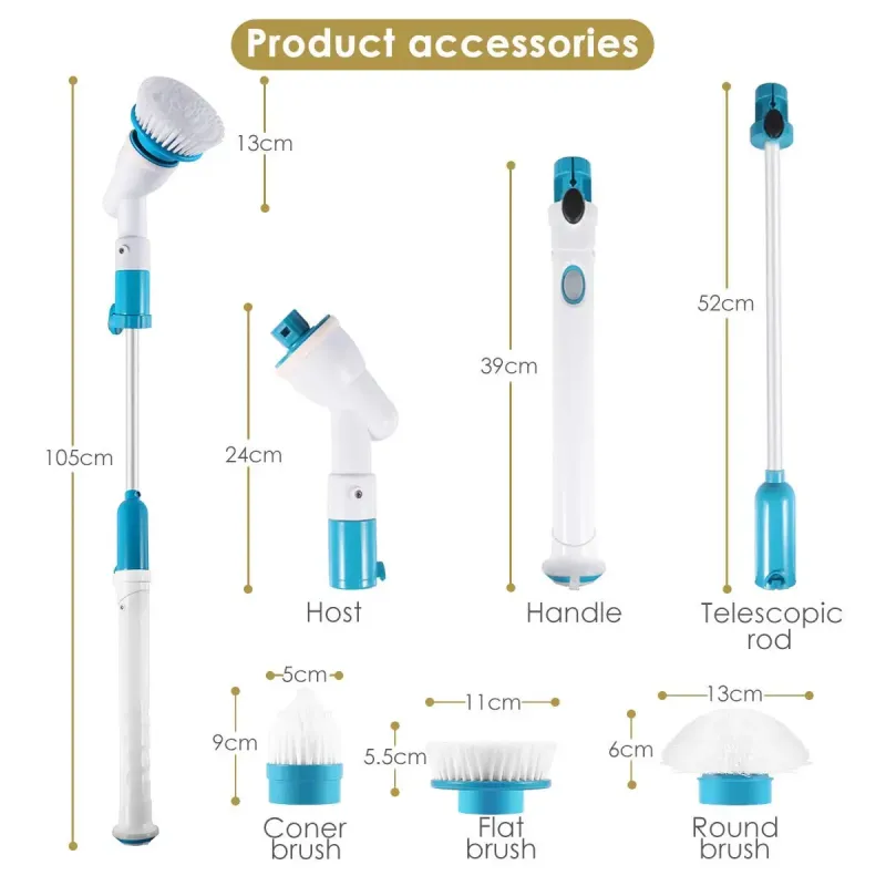 This rechargeable cleaning brush is a multifunctional power cleaning spin scrubber that comes with three scrubbing heads for wide applications.