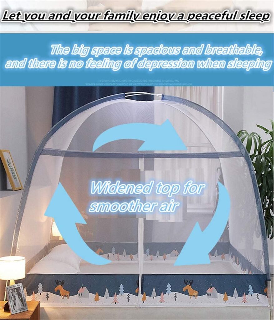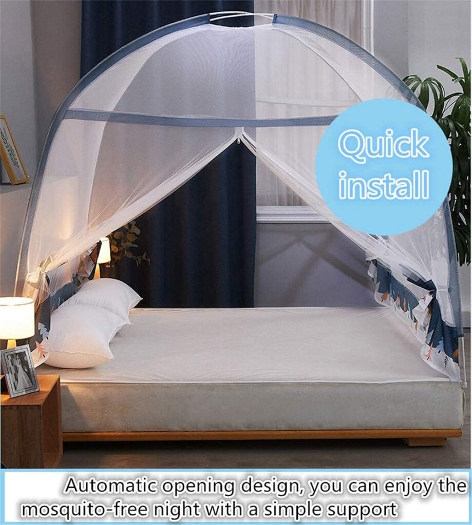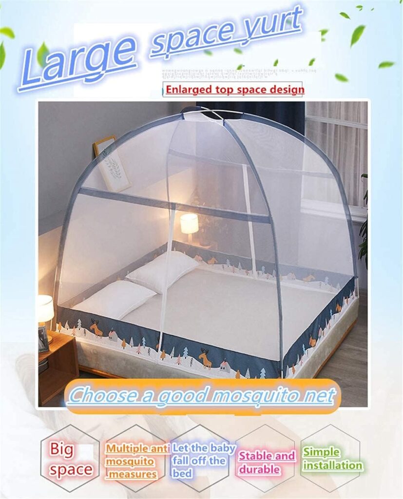 NO NEED TO INSTALL: Large space Mosquito net Mongolian , Polyester material, stainless steel sport, Two doors , – automatically and easy to access , Foldable storage when not in use. Putting it over a bed or using it outside over a camping mattress. zipped opening to get in & out with convenient entry and exit.