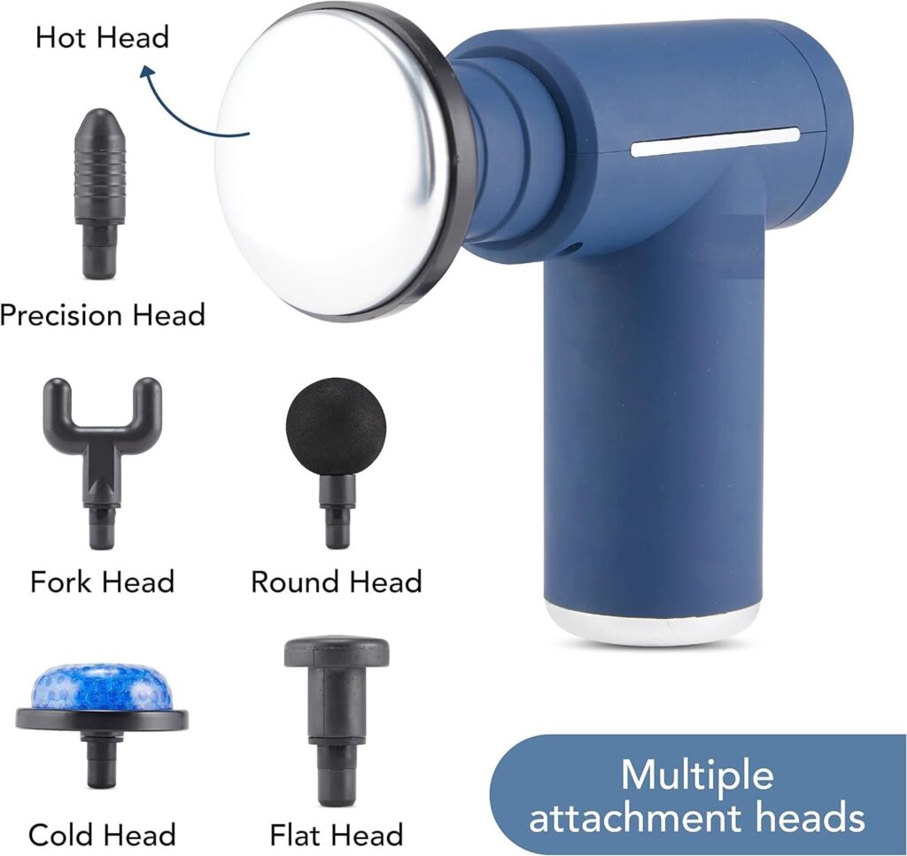 Portable Massage Gun Percussion Muscle Massager Gun Cordless Recovery Massager with 6 Heads and Hot Cold Therapy Compact Muscle Deep Tissue Treatment